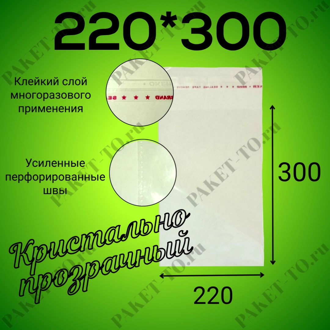 БОПП пакет с клеевым клапаном 220*300 мм, 25мкм (1000шт/уп)