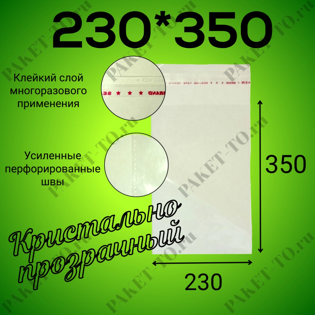 БОПП пакет с клеевым клапаном 230*350 мм, 25мкм (1000шт/уп)