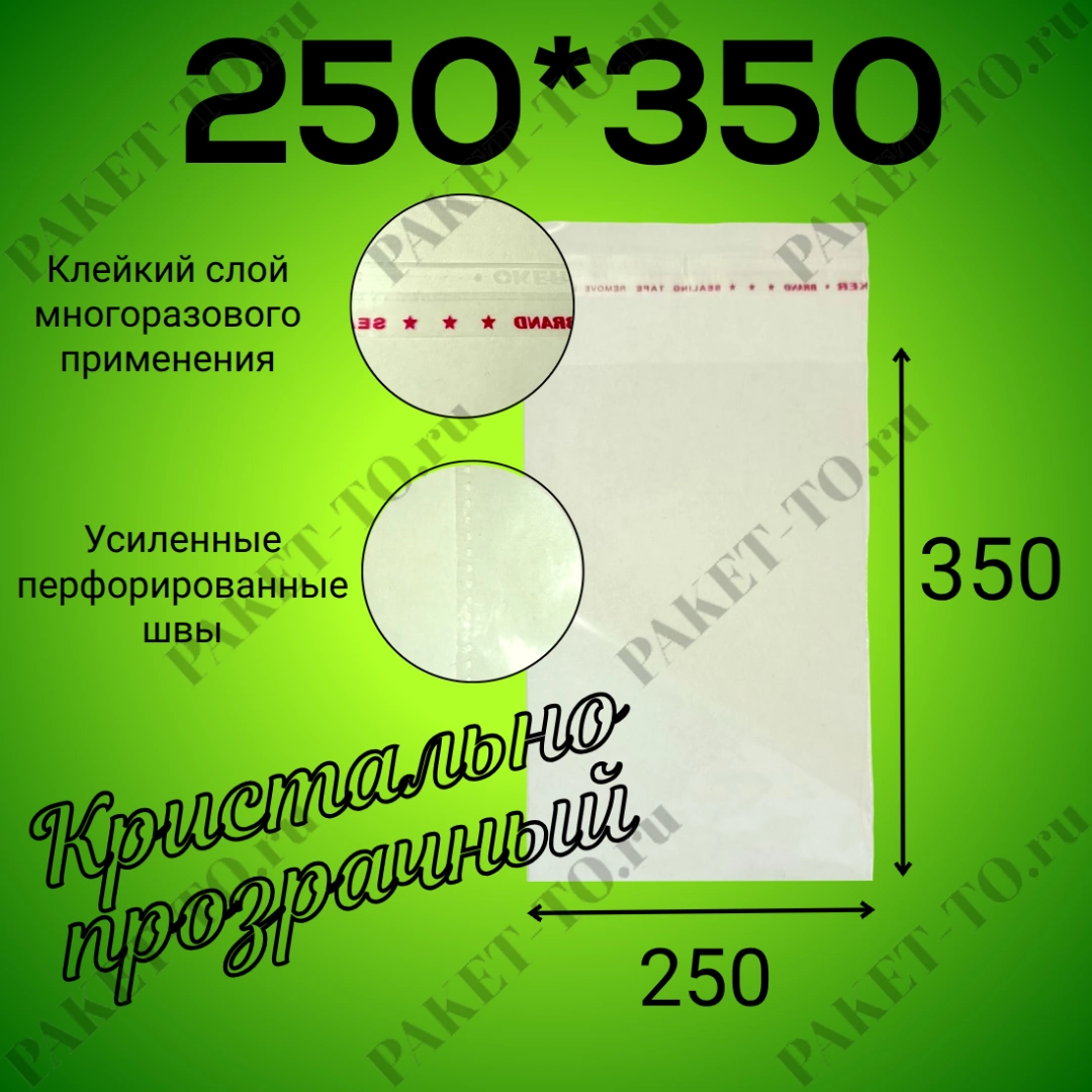 БОПП пакет с клеевым клапаном 250*350 мм, 25мкм (1000шт/уп)