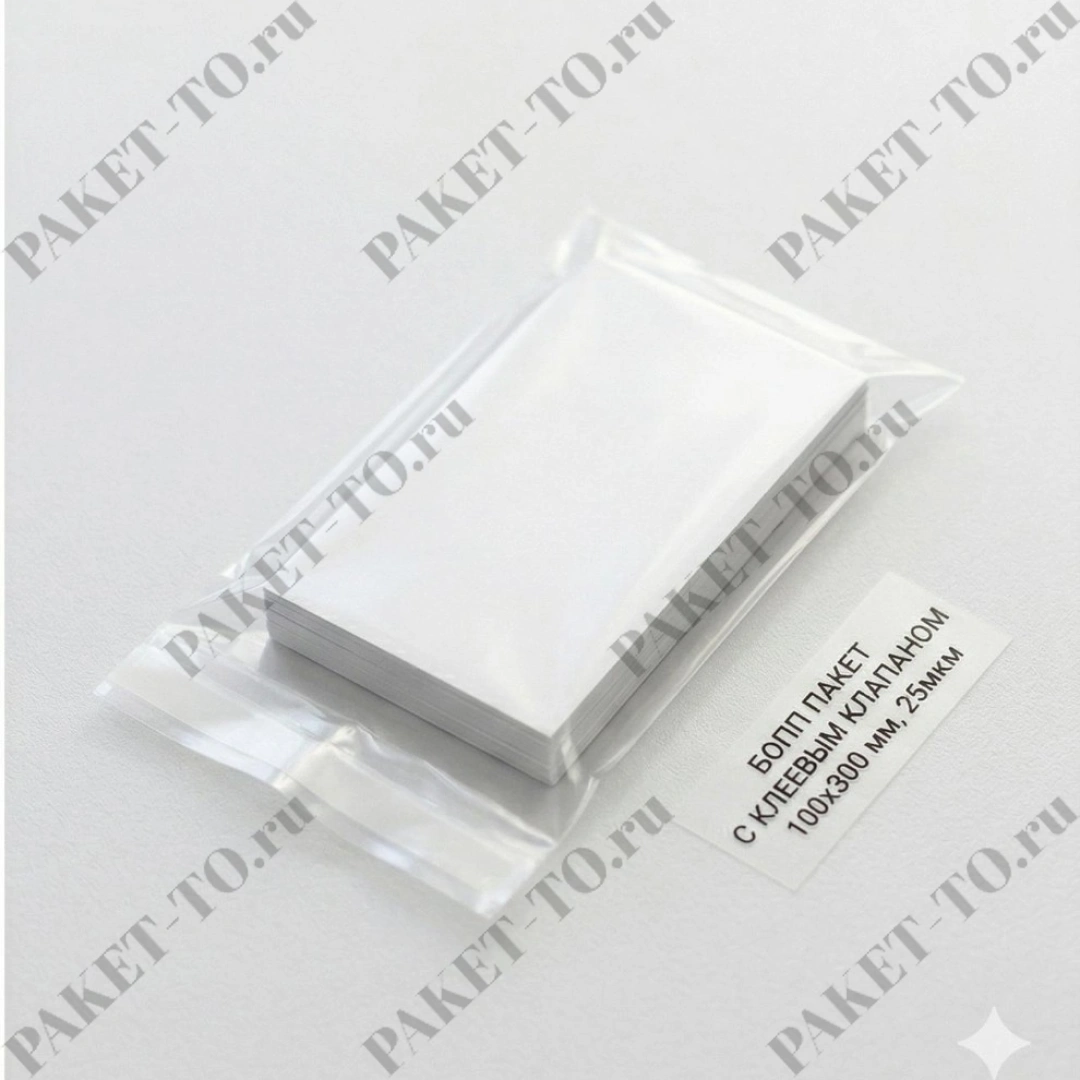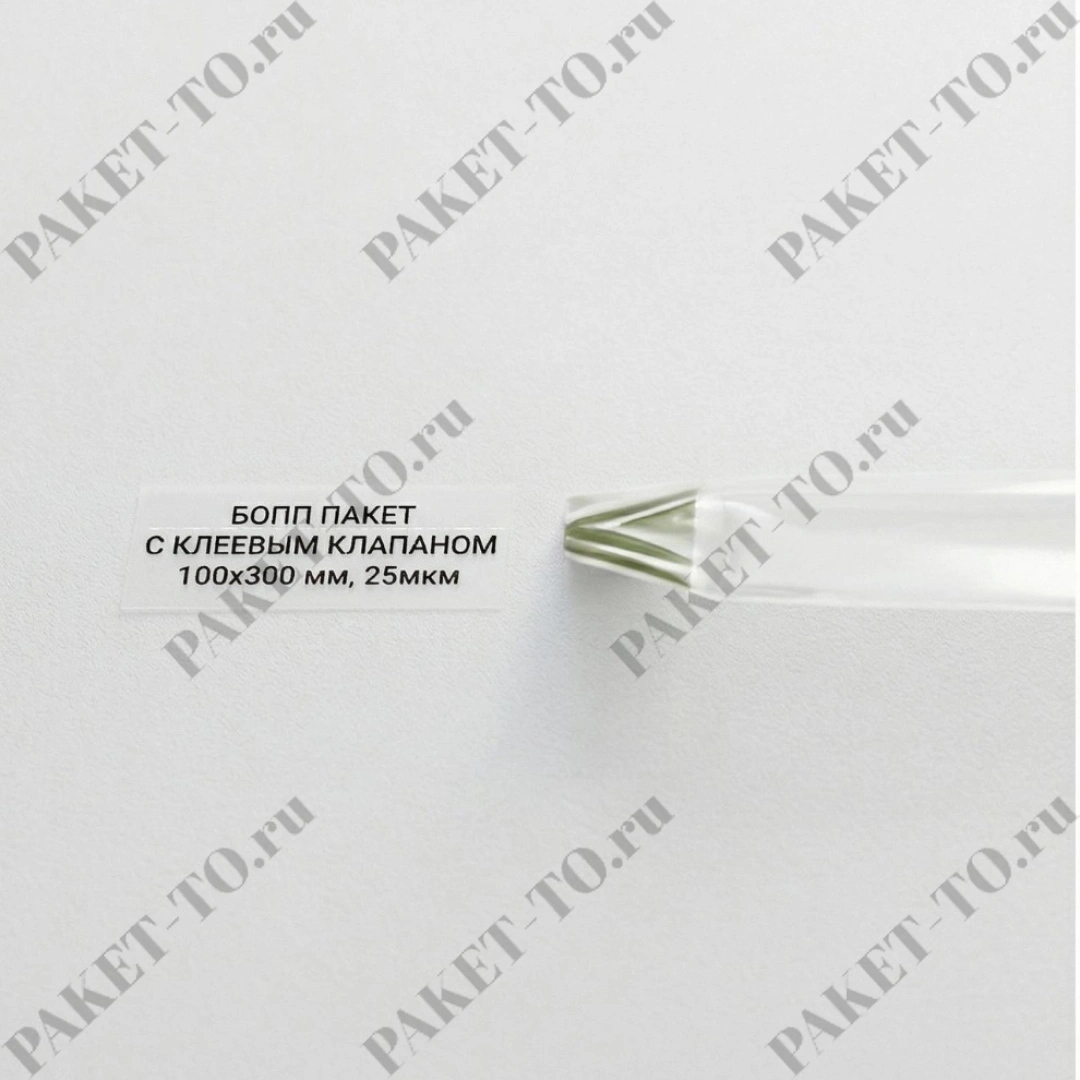 БОПП пакет с клеевым клапаном 100*300 мм, 25мкм (1000шт/уп)