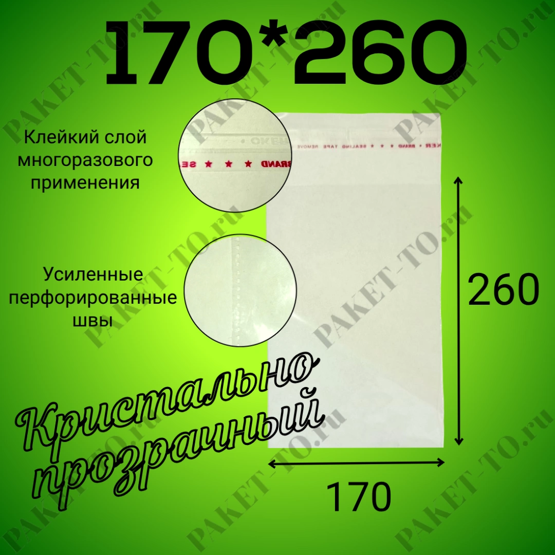 БОПП пакет с клеевым клапаном 170*260 мм, 25мкм (1000шт/уп)