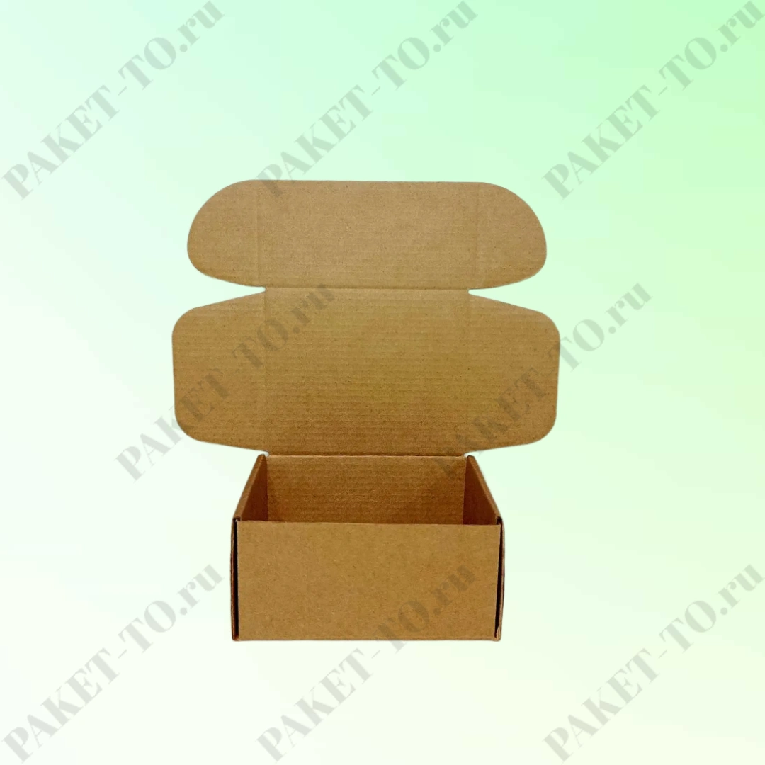 Самосборный короб сделан из высококачественного микрогофрокартона марки Т-23, профиль Е, бурого цвета. Имеет самосборную конструкцию с откидной крышкой и фиксирующими ушками.