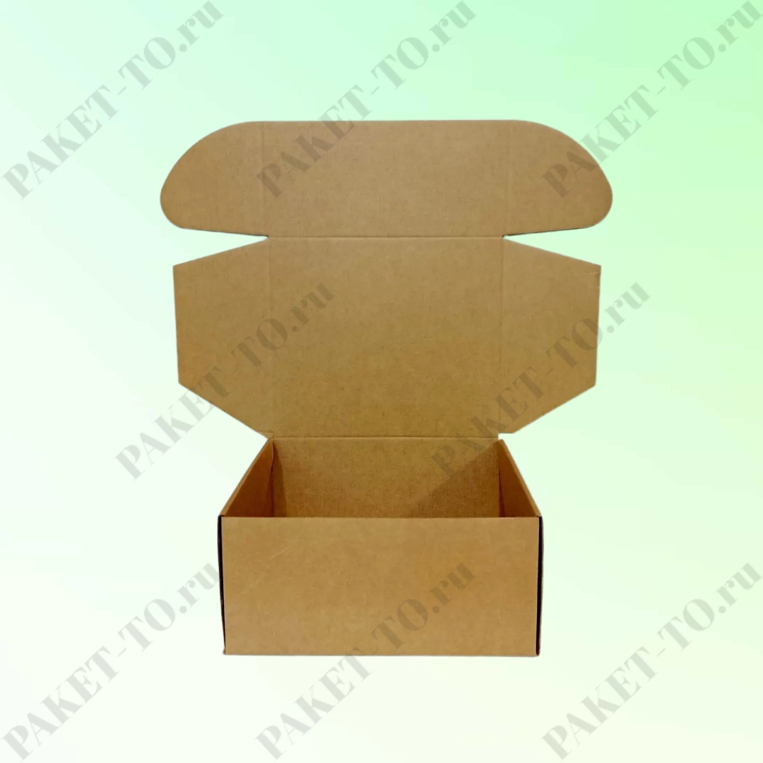 Самосборный короб сделан из высококачественного микрогофрокартона марки Т-23, профиль Е, бурого цвета. Имеет самосборную конструкцию с откидной крышкой и фиксирующими ушками.
